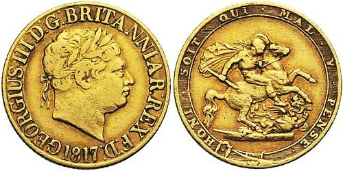 Σχεδόν το μισό βάρος και η διάμετρος , το νέο χρυσό νόμισμα του 1817 περισσότερο από ό, τι ταιριάζει στον προκάτοχό του στην ομορφιά του σχεδιασμού της. Η παραδοσιακή αντίστροφη εγκαταλείφθηκε υπέρ ενός Αγίου Γεωργίου και το δράκο της κλασικής ομορφιάς που σχεδιάσθηκε και χαράκτηκε από την ιταλό χαράκτη Benedetto Pistrucci.
