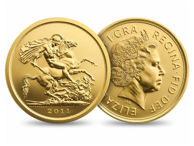 Ο σχεδιασμός Pistrucci του Αγίου Γεωργίου και ο δράκος εξακολουθεί να βασιλεύουν στην χρυσή λίρα οικογένεια, και αναγνωρίζεται ως ένα σύμβολο με προδιαγραφές και την κοπή της αριστείας. Κοσμεί τα πέντε νομίσματα στην βασίλισσα οικογένειας του 2011?κάθε νόμισμα έχει κατασκευαστεί χρησιμοποιώντας πρωτότυπα εργαλεία και ως εκ τούτου εμφανίζει δυναμική το αριστούργημα Pistrucci σε όλη την αρχική του δόξα.