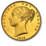 Οι πρώτες βικτωριανές λίρες κυκλοφόρησαν το 1838 και έφεραν μπροστά μία μορφη της Βικτωρίας, και πίσω ένα θυρεό.