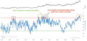 Το δημόσιο αίσθημα του χρυσού είναι γενικά υπερβολικά ανοδικό, αλλά… Το δημόσιο συναίσθημα του Gold (γράφημα & δεδομένα από το